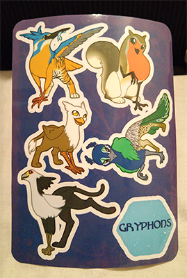 Stickersheet with my original five gryphon variations as stickers on it. Vinyl, handcut, laminated for additional staying power. The sheet is approximately DIN A5 in size.